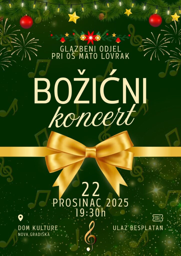 S radošću vas pozivamo na božićni koncert učenika i nastavnika Glazbenoga odjela koji će se održati u ponedjeljak 22. prosinca 2025. godine u 19:30 u dvorani Doma kulture.