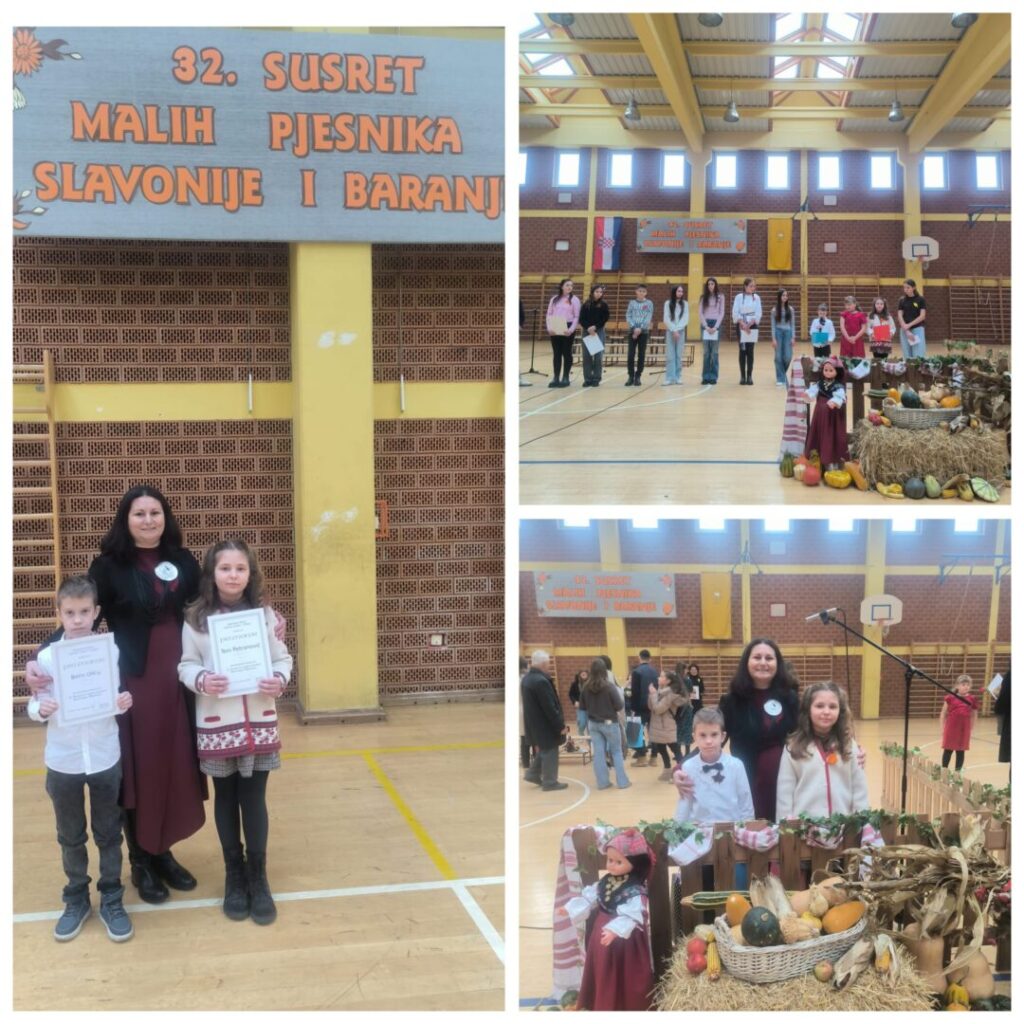U petak, 28. studenoga 2025., u Cerniku je održan 32. Susret malih pjesnika Slavonije i Baranje. Našu školu na 32. Susretu malih pjesnika Slavonije i Baranje predstavljalo je četvero učenika: Bruno Gubić, 7.c, s pjesmom „List“ (mentorica Sanela Jurić); Maša Vidović, 7.a, s pjesmom „Zagrljaj žita i vala“ (mentorica Irena Rakonić); Borna Olić, 2.a, s pjesmom „Žuti list“ i Tena Petranović, 2.a, s pjesmom „Jesen u očima djeteta“ (mentorica Ivana Franić Galik). Svoje literarne ostvaraje naši su učenici izveli pred članovima povjerenstva i brojnom publikom te su nagrađeni velikim pljeskom. Učenici su za svoj rad dobili i prigodne nagrade.