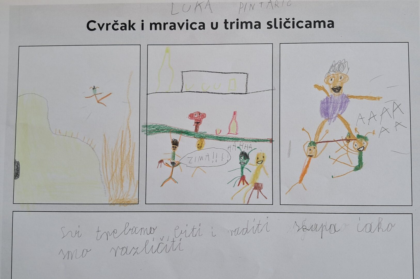 U utorak, 24. veljače učenici 3.d razreda obilježili su Dan materinskog jezika uz portal Vrti svoj film. Pogledali su dugometražni animirani film Cvrčak i mravica redatelja Luke Rukavine. Prije gledanja filma razgovarali su o pročitanim Ezopovim basnama i rješavali listić na kome su trebali povezati životinju i pripadajuću osobinu. Tijekom gledanja filma obratili su pozornost na izgled i ponašanje glavnih i sporednih likova, glazbu i poruku filma. Nakon gledanja crtežom su prikazali glavne događaje u filmu. Gledanje filmova omogućuje povezano ostvarivanje ishoda iz hrvatskog jezika i međupredmetnih tema, učenici razvijaju medijsku pismenost te se kod učenika potiče motvacija i empatija.