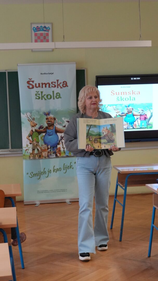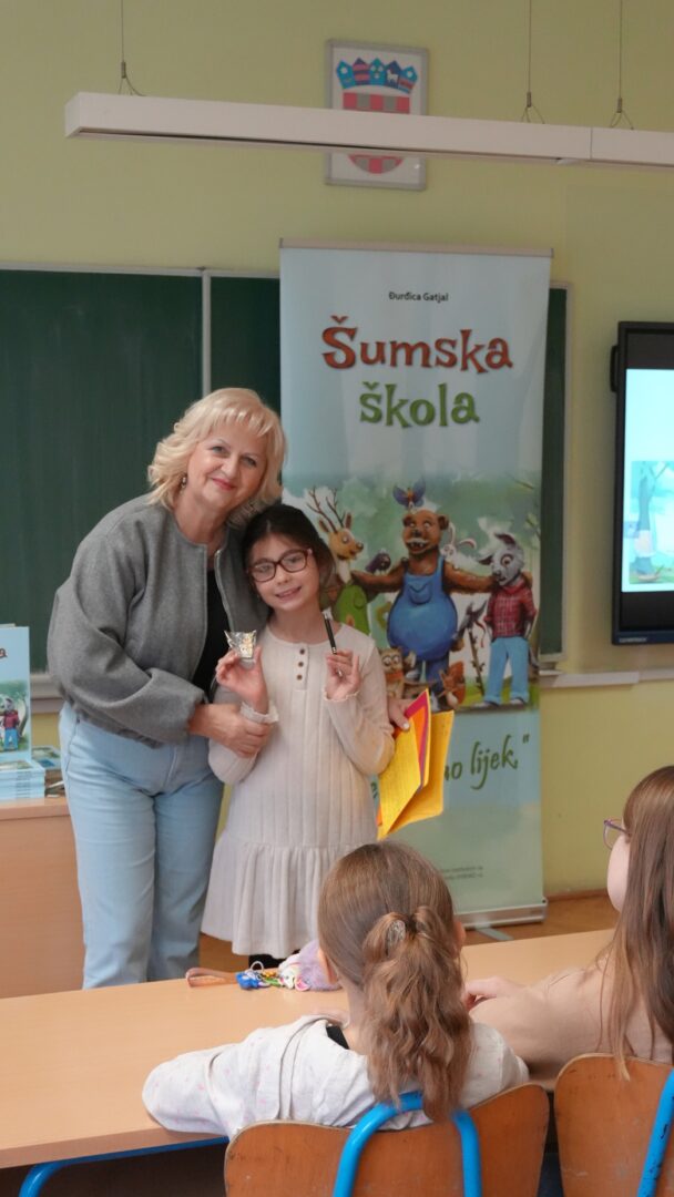 U srijedu 19. studenog 2025. godine učenici 1.-ih i 2.-ih razreda sudjelovali su na svom 1. književnom susretu od početka školovanja. U posjetu nam je došla književnica Đurđica Gatjal, dugogodišnja nastavnica razredne nastave. Autorica je naslova Živi svoj vlastiti život, zbirke poezije Krila i okovi, te slikovnica Družina malih mrava i Šumska škola, koju nam je predstavila na književnom susretu.