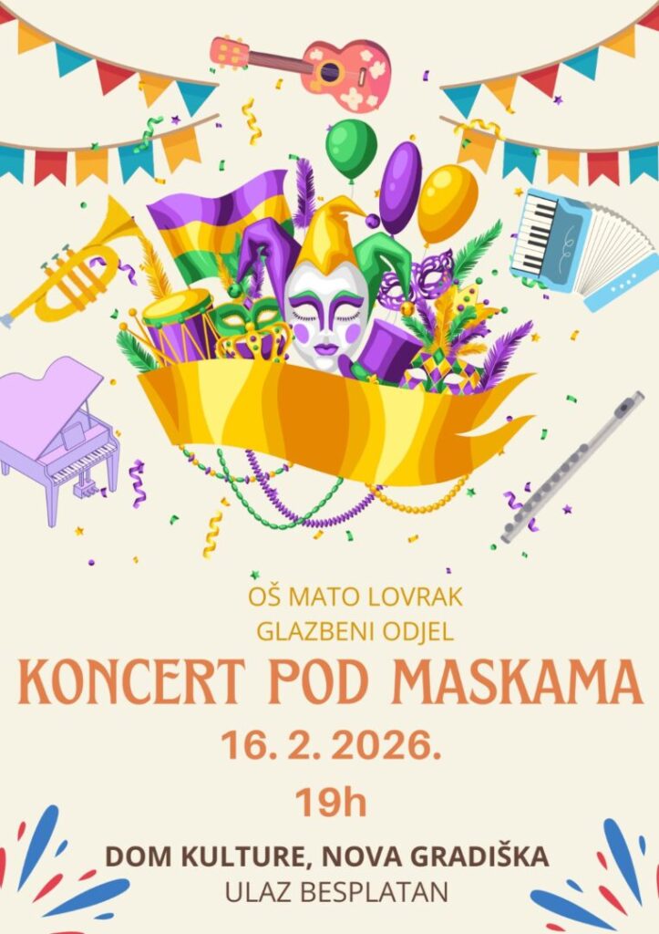 U ponedjeljak,16. veljače u 19 sati učenici Glazbenog odjela preuzimaju pozornicu Doma kulture – pod maskama!