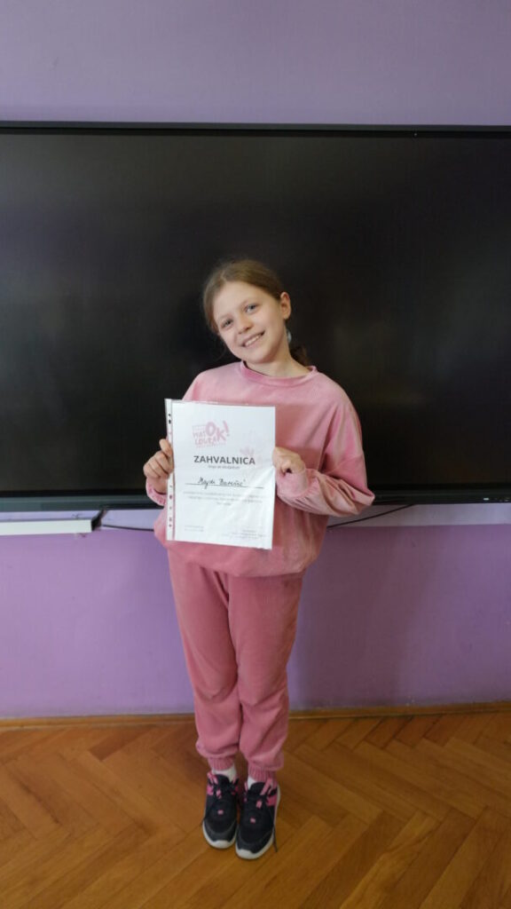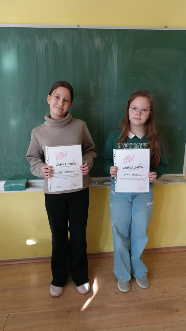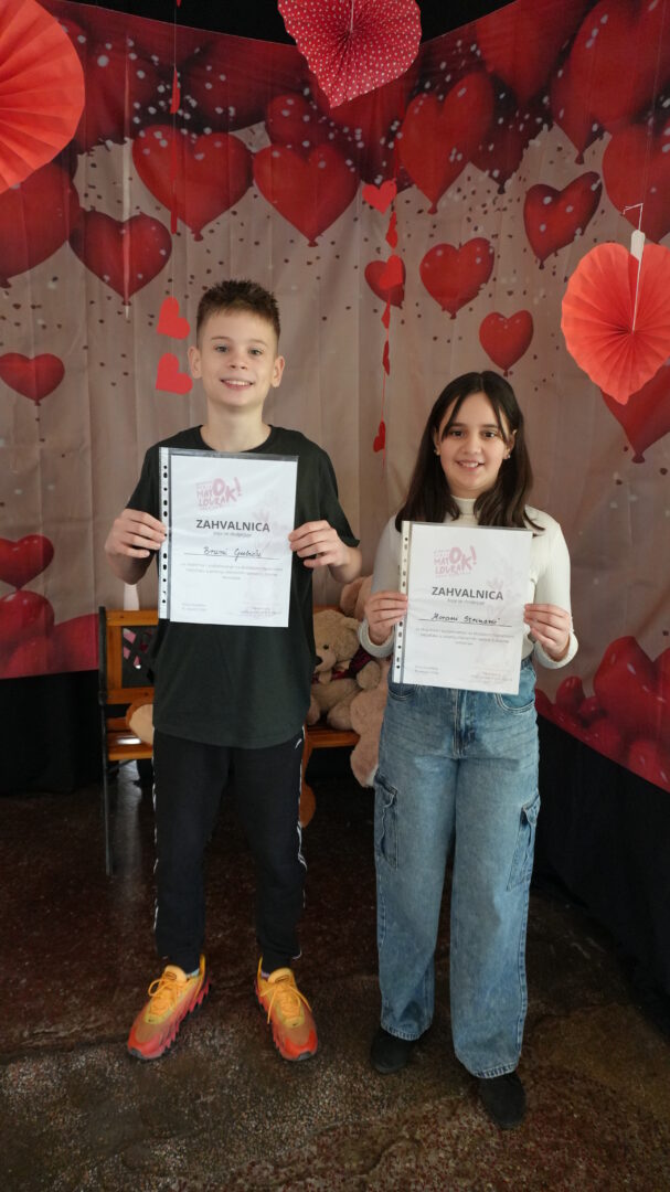 Nagrađeni učenici predmetne nastave su: Bruno Gubić,7.c (mentorica Sanela Jurić), Fran Ruškan, 6.b (mentorica Irena Ruškan) i Morana Strinavić, 5.d (mentorica Sanela Jurić). Njihovi su radovi oduševili toplinom, ljepotom riječi i porukama o prijateljstvu, obitelji i međusobnom poštovanju. Svi sudionici Natječaja za svoj su trud dobili zahvalnice.