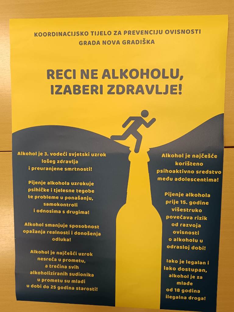 S učenicima 8.d razreda naše škole, sudjelovali smo u obilježavanju Svjetskog dana borbe protiv alkoholizma koji se obilježava – 1. travnja 2026. godine. Ova manifestacija organizirana je u prostoru Informativnog centra policije u organizaciji Koordinacijskog tijela za prevenciju ovisnosti Grada Nova Gradiška.