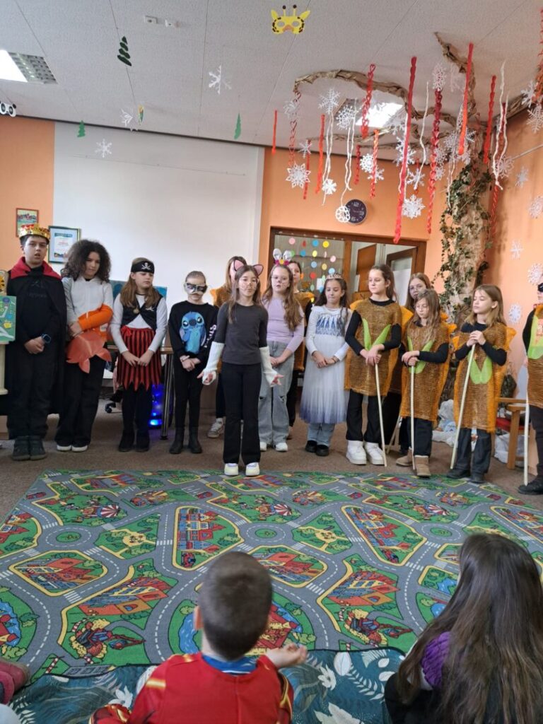Dramska skupina OŠ “Mato Lovrak” s učiteljicom Željkom Trlin 16.2.2026. bili su gosti na Dječjem odjelu gradske knjižnice Nova Gradiška gdje su u veselom ozračju obilježili pokladne dane.