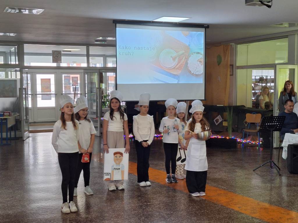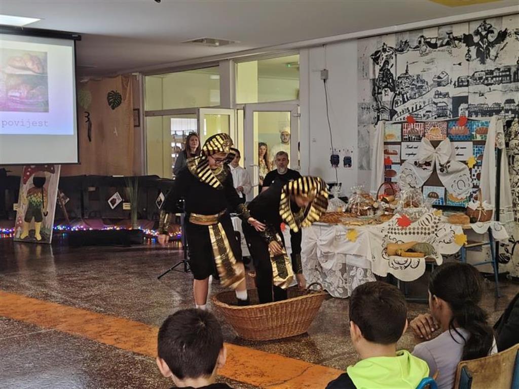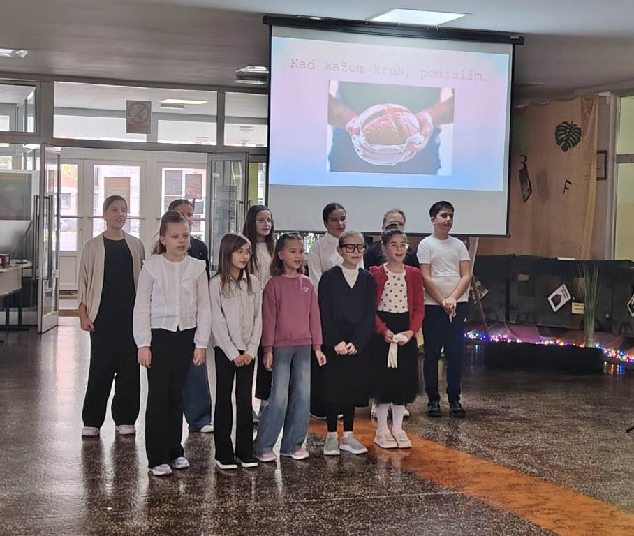U našoj je školi 23. listopada održana priredba povodom Dana kruha i zahvalnosti za plodove zemlje. Školski hol bio je ispunjen mirisima svježeg kruha i kolača koje su učenici donijeli od kuće, a pripremili su ih njihovi bližnji. Na priredbu su se i ovoga puta rado odazvali župnik te đakon koji su blagoslovili kruh i sve prisutne učenike, roditelje i učitelje. Naša je ravnateljica, gospođa Vesna Lončar-Cindrić, prigodno pozdravila sve prisutne i zahvalila na sudjelovanju i pripremi, a potom su učenici, s puno truda, izvodili recitale i igrokaze posvećene kruhu, radu i zahvalnosti, a školski je zbor uljepšao priredbu veselim pjesmama. Učenike su za svečani program pripremali učitelji Emanuela Ljubičić, Bojana Kvakić, Željka Trlin, Andrijana Petrović, Dragan Starivlah, Irena Rakonić i Martina Videc.