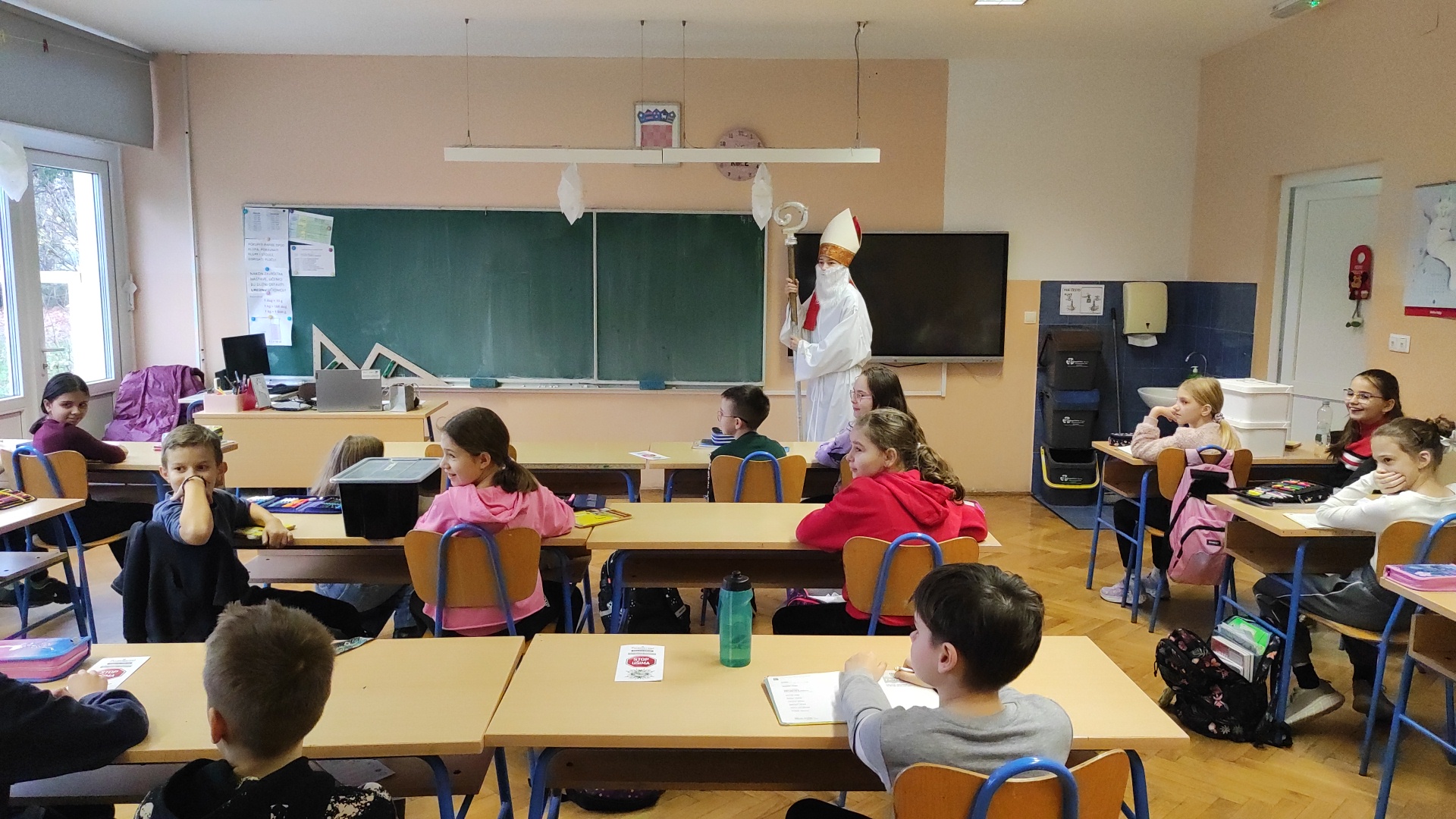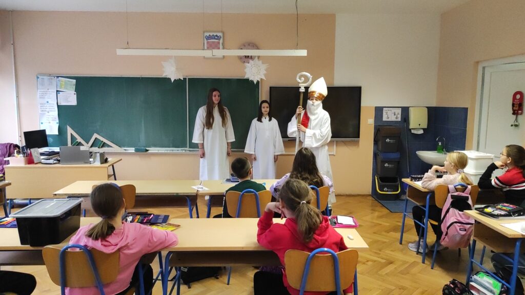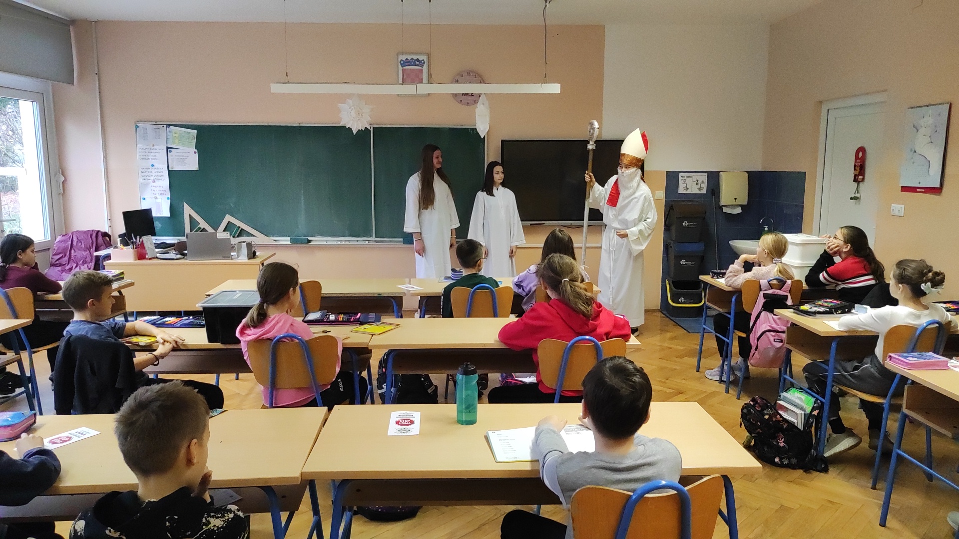 Sve prisutne pokušao je uplašiti strašni Krampus, ali Nikola ga je brzo otjerao jer je znao da su u našoj školi samo dobra djeca. Biskup Nikola potaknuo je djecu da razmisle o svojim djelima, da čine dobro i budu zahvalni za sve što imaju. Na kraju je svima podijelio slatke poklone.