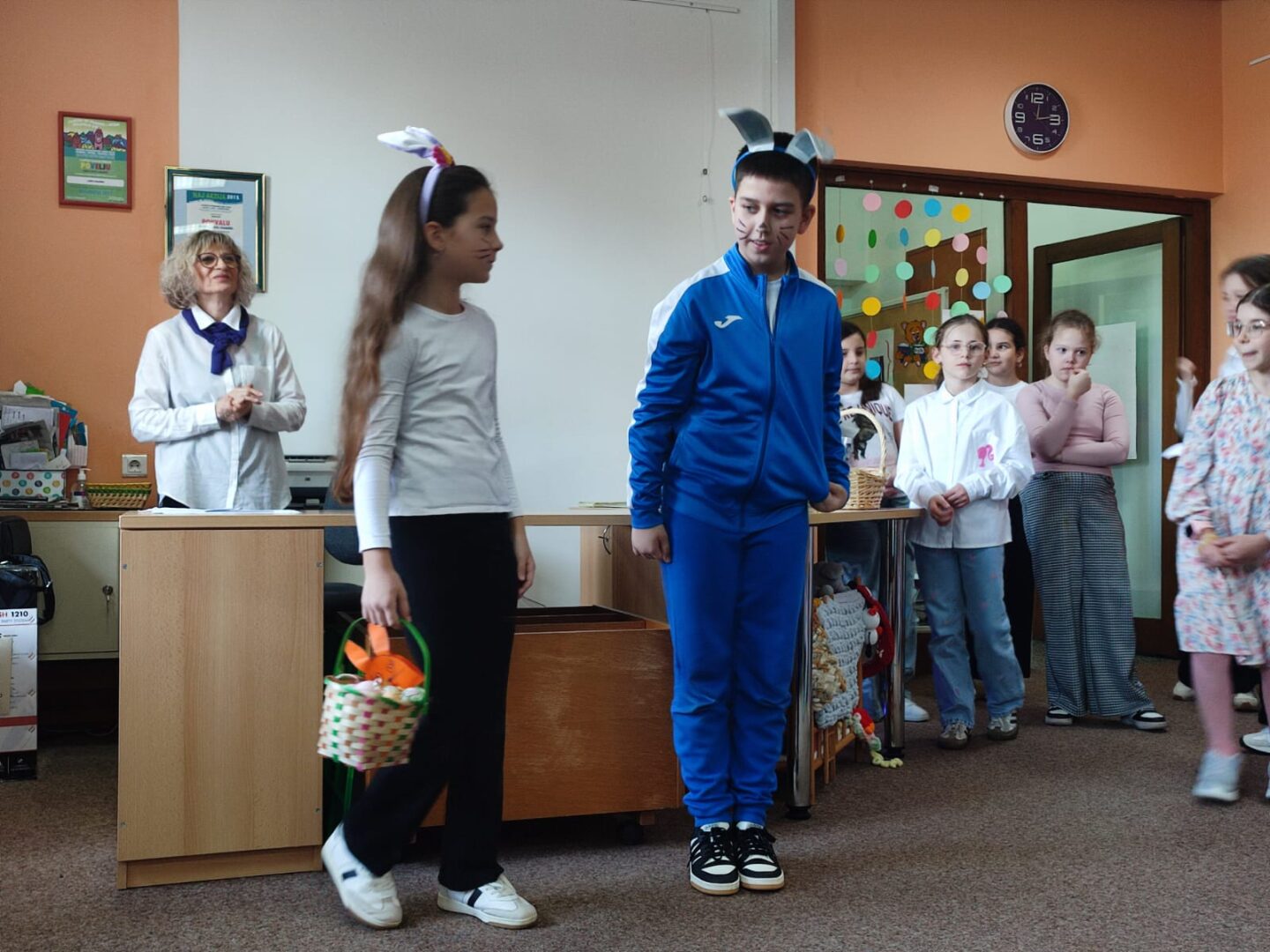 Učenici Dramske skupina OŠ “Mato Lovrak” s učiteljicom Željkom Trlin posjetili su 15.4.2025. Dječji odjel Gradske knjižnice te scenskom igrom i pjesmama unijeli dašak proljeća i nastupajućeg blagdana Uskrsa. Svojim nastupom razveselili su stariju vrtićku skupinu „Loptice“ iz vrtića „Radost“ kao i djelatnike knjižnice. Dramska skupina predstavila se s recitacijama i pjesmama o proljeću te uz nastupajući blagdan Uskrsa izvela dramsko-scensku igru „Uskrsna zečja prepirka“ te lutkarski igrokaz „Jaje i pisanica“ koji su mališani iz vrtića sa zanimanjem slušali. Na kraju su uz pjesmu Proljetno kolo izveli i kratku plesnu koreografiju te pozvali i vrtićance da im se pridruže koji su to rado prihvatili. Na kraju su se svi sudionici ovog druženja zasladili čokoladnim jajima i lizalicama. Zahvaljujemo djelatnicima knjižnice na ukazanoj dobrodošlici kao i na okrijepi slasticama.
